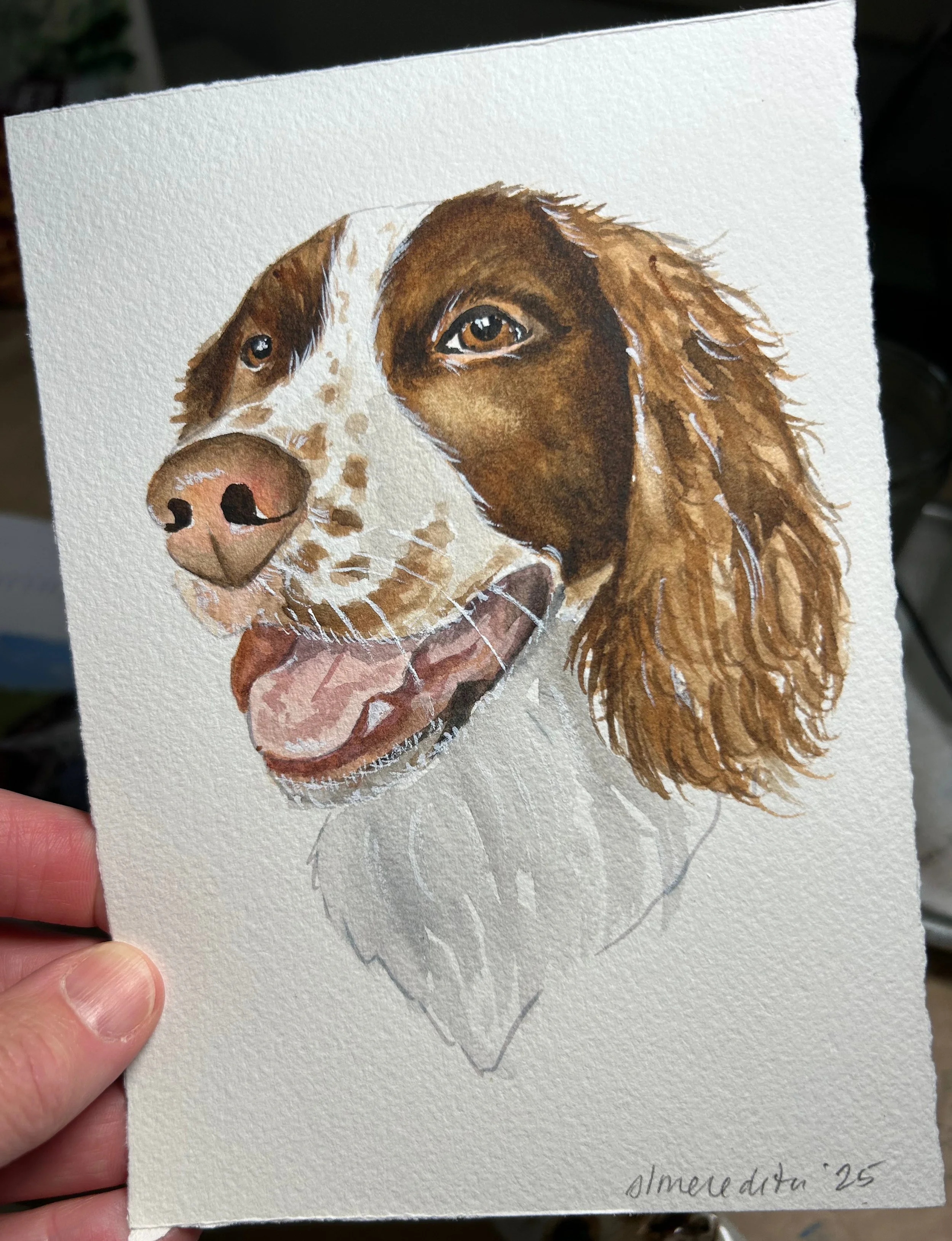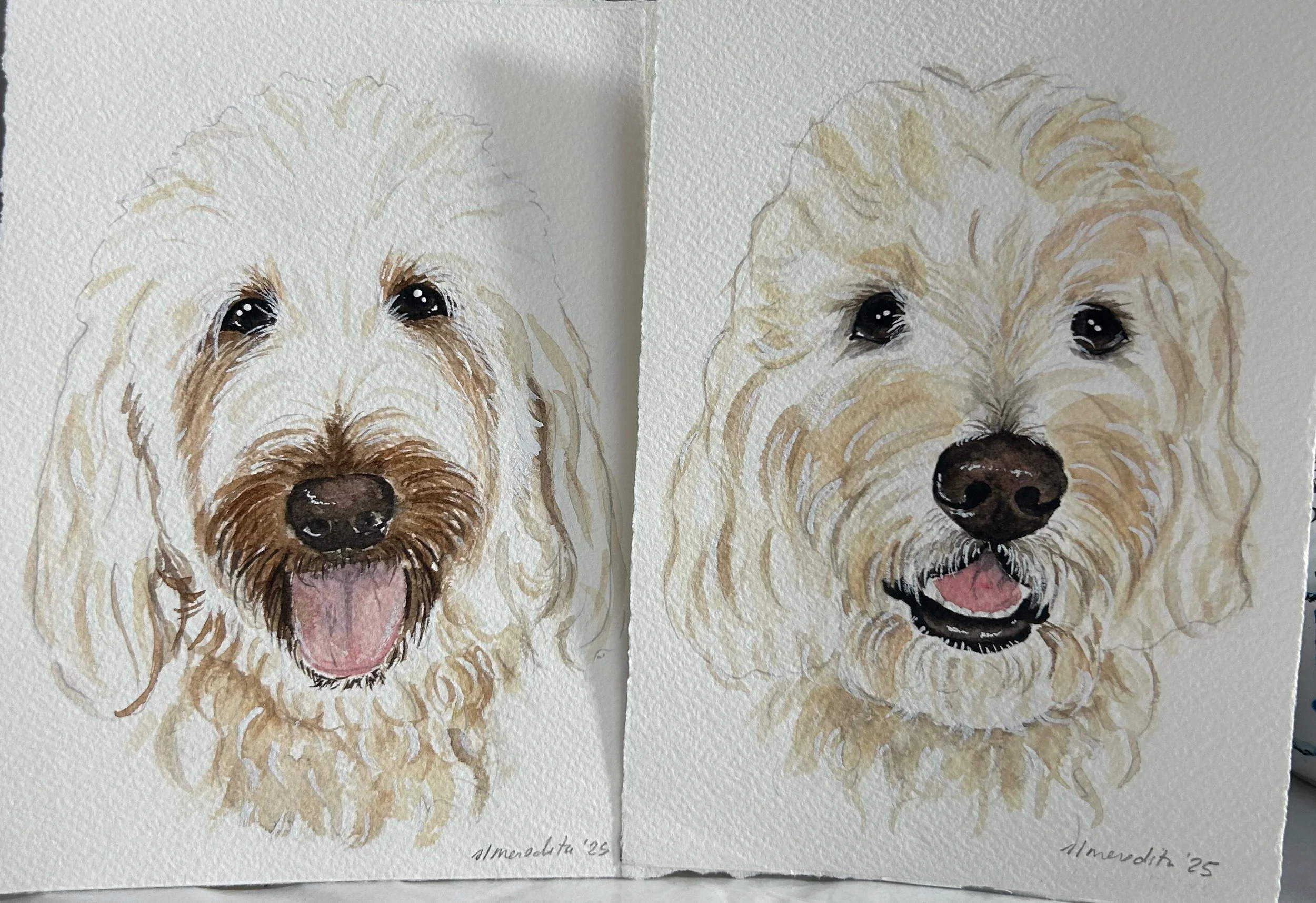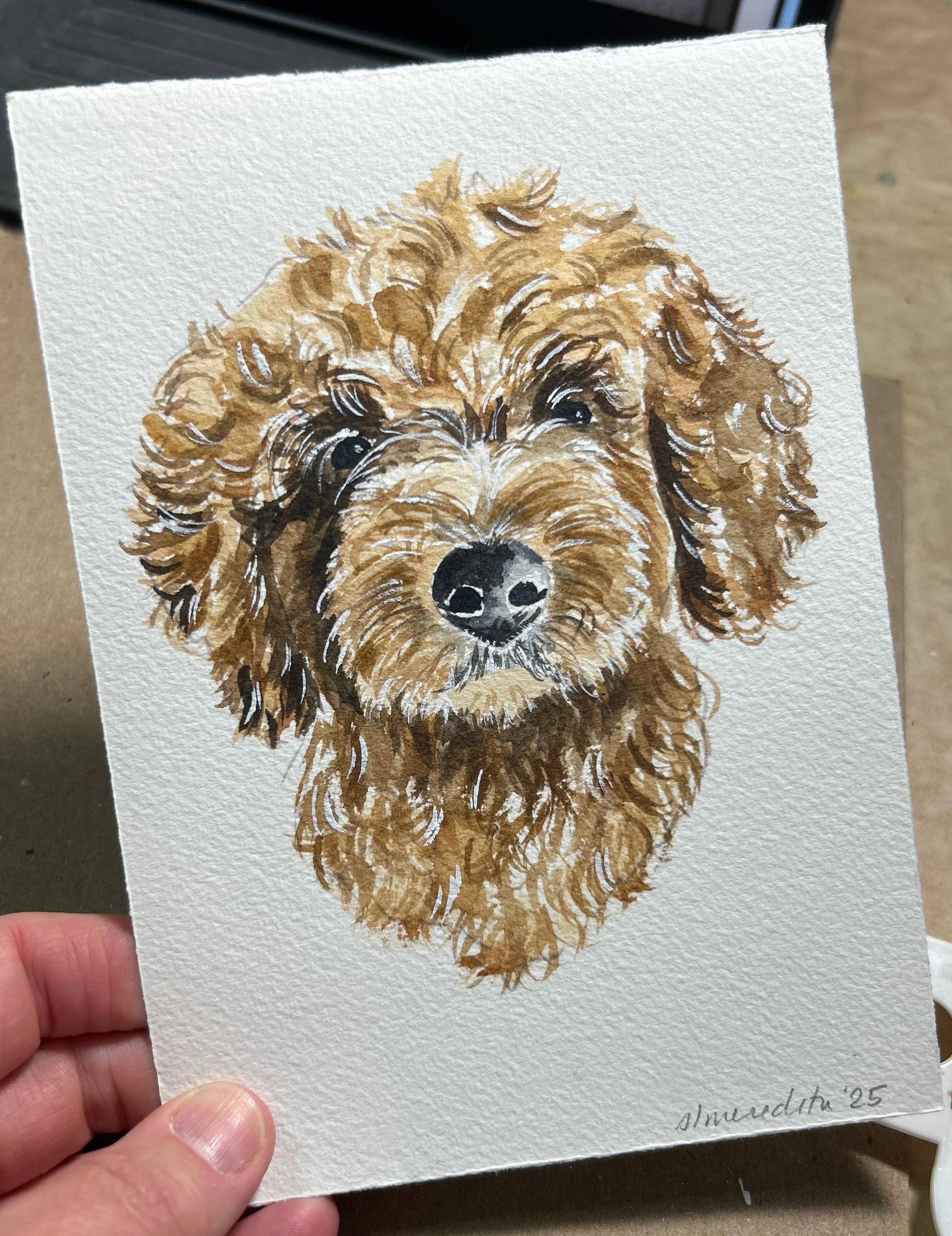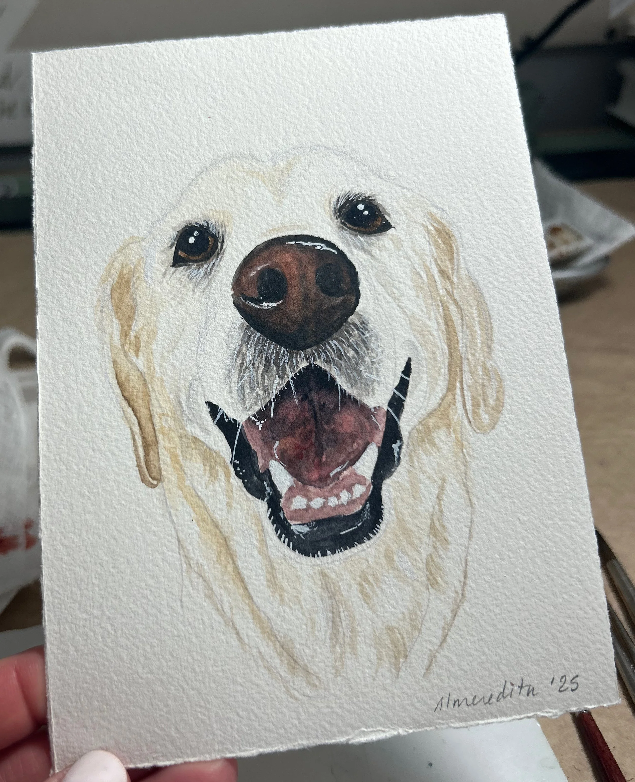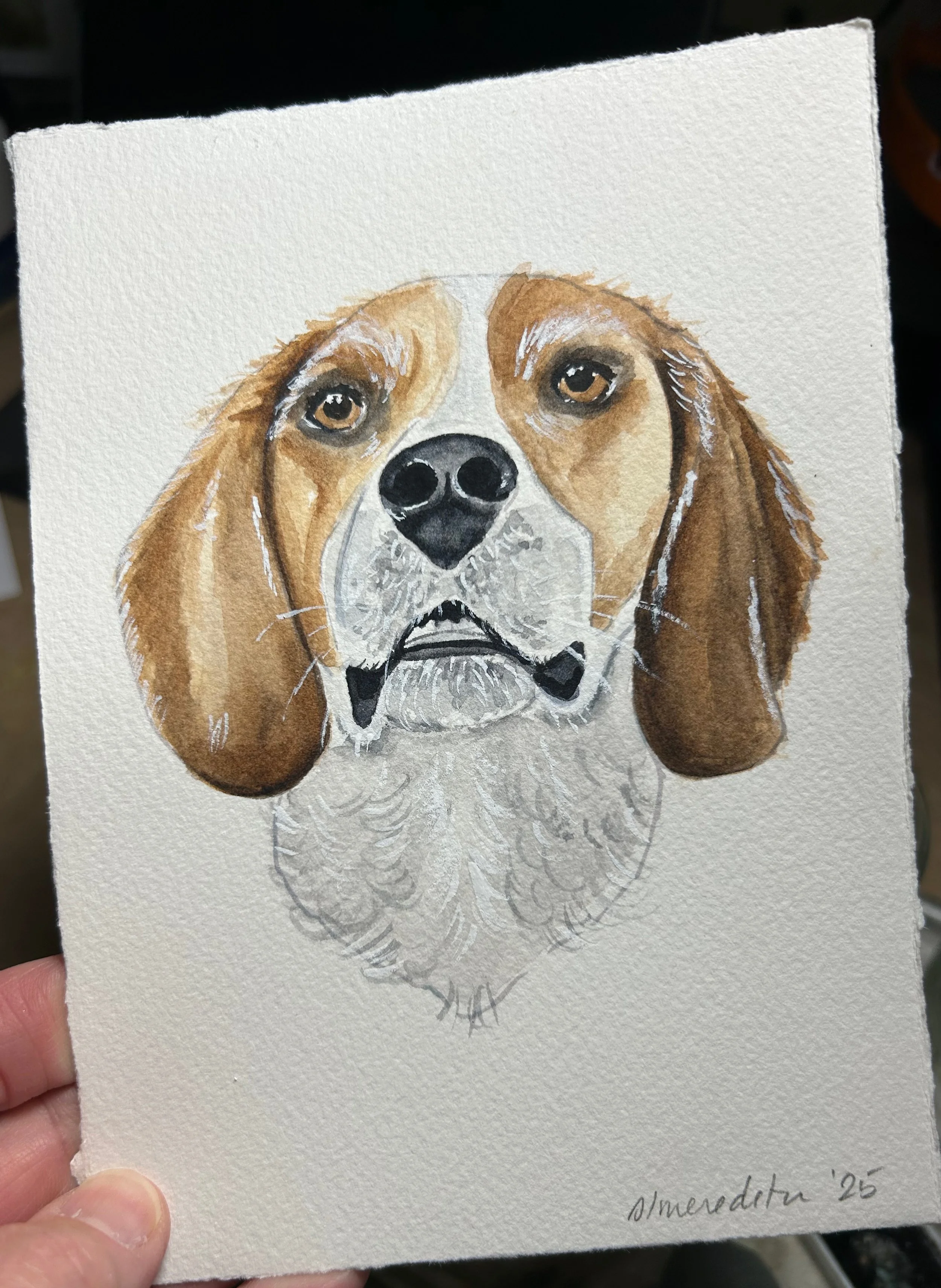 These representational portraits of your pet are done by hand in my unique art style and will vary from subject to subject. Because these are not large paintings, every detail can not be represented, but I strive to capture the personality and style of the pet. All of my custom portraits begin with a sketch on 140lb bright white, high-quality cold press watercolor paper and archival watercolor paint. I spend time on each portrait lovingly capturing details that make these a truly unique and special gift.